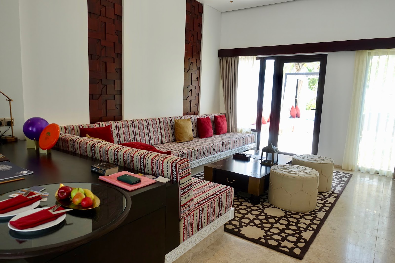 Out of the 136 rooms comprising of premier and deluxe rooms as well as one- resp. two-bedroom villas my husband and I opted for a one-bedroom beach villa
