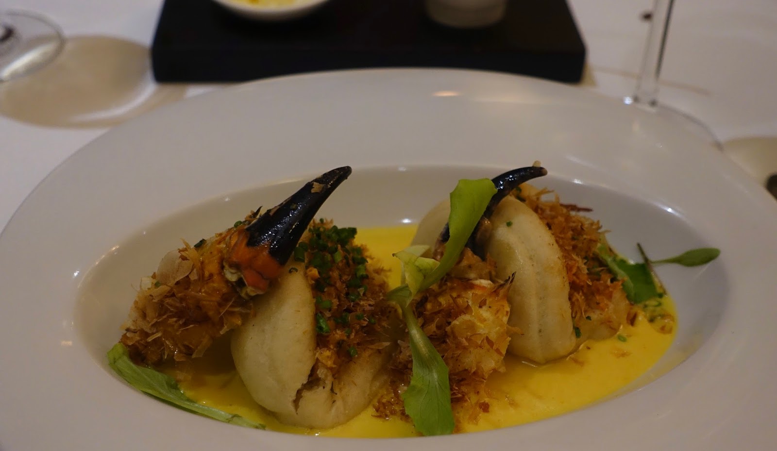 Out of the dishes we had you find three examples. First, an inventive starter, stone crab steam bun with saffron emulsion and Katsuobushi (dried, fermented and smoked tuna).