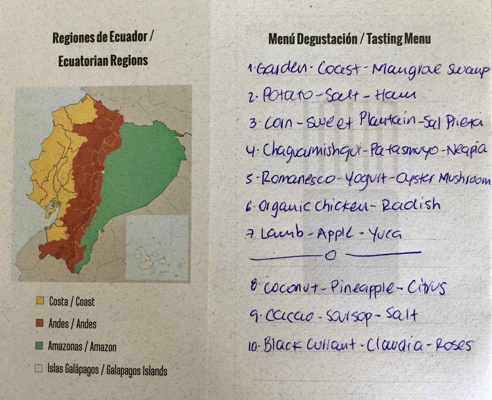 We were catapulted to a veritable culinary journey through Ecuador’s regions, from the coast to the Andes, the Amazon and the Galapagos Islands. It truly was a memorable experience! All the courses were imaginative, immaculately prepared with attention to detail and full of taste. And imagine, the paired drinks were just as inventive. Of course, you got wine but also mint and sugar cane liquor (first course), fermented corn (second course) or chamomile gin tonic (ninth course).