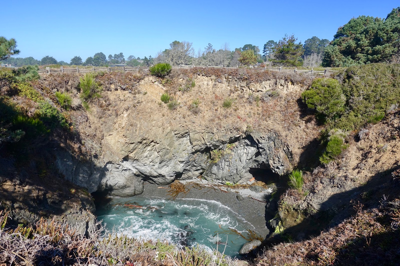 Not much further in the north there is the stunning Russian Gulch State Park with different hiking trails at your disposal, some leading to a waterfall, others along the beautiful craggy cliffs. Interesting features are a sink hole and a photogenic bridge rising high from the bottom of the gulch.